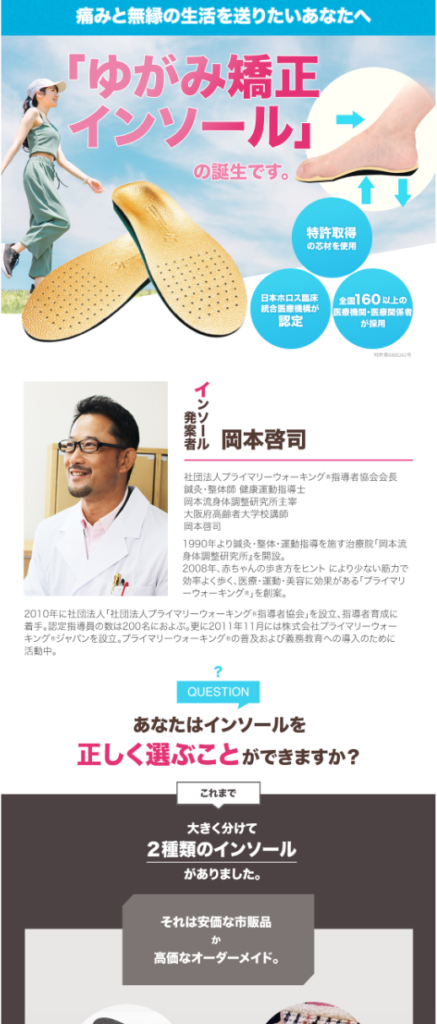 架空のゆがみ矯正インソールLPです。