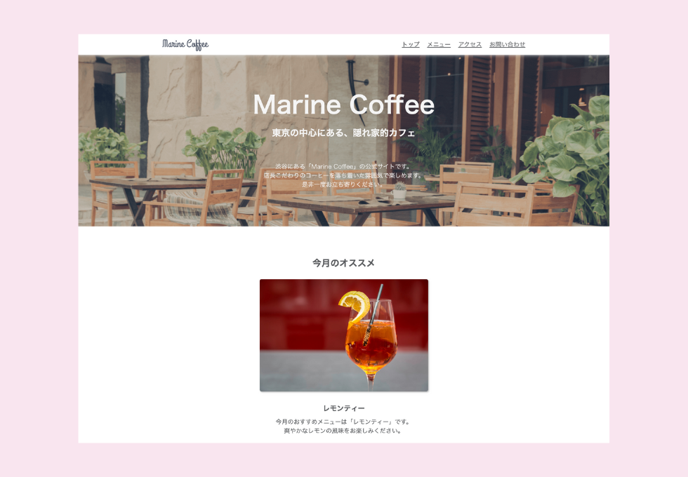 カフェホームページ(架空サイト)